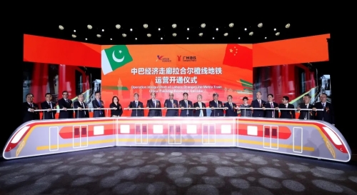 10月25日,巴基斯坦拉合爾軌道交通橙線項(xiàng)目在中國北京和巴基斯坦旁遮普省首府拉合爾市,以視頻連線方式隆重舉行運(yùn)營開通儀式,這標(biāo)志著巴基斯坦駛?cè)氲罔F時代。國家發(fā)展和改革委員會秘書長趙辰昕,中國兵器工業(yè)集團(tuán)有限公司董事長焦開河、總經(jīng)理劉大山、副總經(jīng)理植玉林,巴基斯坦駐華大使莫恩·烏·哈克、巴基斯坦旁遮普省首席部長薩爾達(dá)爾·烏斯曼·布茲達(dá)爾、中國駐巴基斯坦拉合爾總領(lǐng)事龍定斌等出席開通儀式。