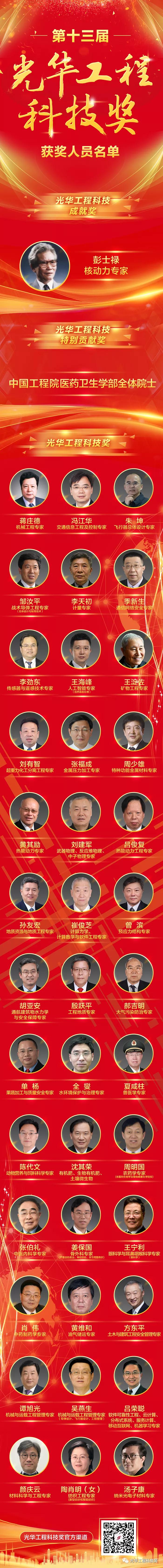 11月8日,第十三屆光華工程科技獎(jiǎng)揭曉儀式在北京隆重舉行。中國(guó)兵器工業(yè)集團(tuán)有限公司科技委副主任委員、戰(zhàn)術(shù)導(dǎo)彈工程專家鄒汝平獲第十三屆光華工程科技獎(jiǎng)(獲獎(jiǎng)人員全名單及鄒汝平事跡附后)。 光華工程科技獎(jiǎng)由中國(guó)工程院主管,每?jī)赡觐C發(fā)一次,目前已是第十三屆,被譽(yù)為“中國(guó)工程界最高獎(jiǎng)項(xiàng)”,極大地激勵(lì)了我國(guó)工程師、科學(xué)家從事工程科技研究、發(fā)展、應(yīng)用的積極性和創(chuàng)造性。根據(jù)光華工程科技獎(jiǎng)候選人提名要求,候選人需在重大工程設(shè)計(jì)、研制、建造、生產(chǎn)、運(yùn)行、管理等方面解決關(guān)鍵科學(xué)技術(shù)問(wèn)題或在工程科學(xué)技術(shù)及工程管理領(lǐng)域有重要發(fā)現(xiàn)、發(fā)明,并有顯著應(yīng)用成效,或者是應(yīng)用本人研究成果、發(fā)明創(chuàng)造,發(fā)展高新技術(shù)及相關(guān)產(chǎn)業(yè),成效特別顯著者才可提名。今年,全國(guó)范圍內(nèi)共產(chǎn)生了296名有效候選人。 此次揭曉儀式正式公布了從296名候選人中評(píng)選出的第十三屆光華工程科技成就獎(jiǎng)、光華工程科技特別貢獻(xiàn)獎(jiǎng)以及光華工程科技獎(jiǎng)的獲得者,最終僅有40位專家和1個(gè)團(tuán)體獲獎(jiǎng)。本屆光華工程科技獎(jiǎng)的獲獎(jiǎng)科學(xué)家們,緊密圍繞國(guó)家重大戰(zhàn)略需求,瞄準(zhǔn)經(jīng)濟(jì)建設(shè)和事關(guān)國(guó)家安全的重大工程科技問(wèn)題,緊貼新時(shí)代社會(huì)民生現(xiàn)實(shí)需求和軍民融合需求,加快自主創(chuàng)新成果轉(zhuǎn)化應(yīng)用,為創(chuàng)新驅(qū)動(dòng)發(fā)展,建設(shè)科技強(qiáng)國(guó),以及實(shí)現(xiàn)“兩個(gè)一百年”奮斗目標(biāo)和中國(guó)夢(mèng)做出了重要貢獻(xiàn)。 獲獎(jiǎng)人員全名單 來(lái)源/光華工程科技獎(jiǎng) |
