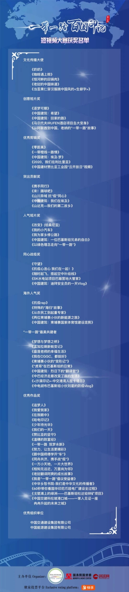 近日,由中國公共外交協(xié)會、國務(wù)院國資委新聞中心和環(huán)球網(wǎng)聯(lián)合主辦的第二屆“一帶一路”百國印記短視頻大賽獲獎名單揭曉,中國兵器工業(yè)集團(tuán)北方公司兩部作品獲獎,其中《一帶橙線一路情》榮獲“優(yōu)秀剪輯獎”,《溫穗的致富經(jīng)》榮獲“優(yōu)秀作品獎”。 《一帶橙線一路情》 《一帶橙線一路情》講述的巴基斯坦拉合爾橙線軌道交通項目是“一帶一路”倡議下中巴經(jīng)濟(jì)走廊首個簽約的基礎(chǔ)設(shè)施項目,也是巴基斯坦第一條城市軌道交通項目。橙線項目建設(shè)和實施過程中,北方國際廣泛運用中國標(biāo)準(zhǔn)、中國技術(shù)、中國裝備,高質(zhì)量的設(shè)計和建設(shè)得到了巴方合作伙伴的高度贊譽(yù),被拉合爾當(dāng)?shù)厥忻裼H切稱為“來自中國兄弟的一份厚禮”。 《溫穗的致富經(jīng)》 《溫穗的致富經(jīng)》聚焦隨著緬甸萊比塘銅礦開發(fā)不斷深入,萬寶礦產(chǎn)推出“社區(qū)社會發(fā)展”計劃并施行了一系列惠民政策,幫助吳溫穗這名普通當(dāng)?shù)卮迕耖_起了擁有7.5萬只蛋雞的現(xiàn)代化養(yǎng)殖場。如今的吳溫穗,儼然成為了率先致富的農(nóng)村企業(yè)家。吳溫穗深信,項目不僅讓村民過上了以往不敢想的好日子,更教會了他們致富之道,項目和村民的未來都會更加美好。 本屆大賽獲得了眾多參與“一帶一路“發(fā)展建設(shè)的大型企事業(yè)單位及個人的響應(yīng),共征集了來自近80個國家的500余部參賽作品。經(jīng)過公眾投票與專家評審的兩輪角逐,本屆大賽最終評選出文化傳播大使獎、創(chuàng)意短片獎、優(yōu)秀剪輯獎、突出貢獻(xiàn)獎、人氣短片獎、同心戰(zhàn)疫獎、海外人氣獎各5名,“一帶一路”最美共建者 10名,優(yōu)秀組織單位 2個,優(yōu)秀作品獎20名。