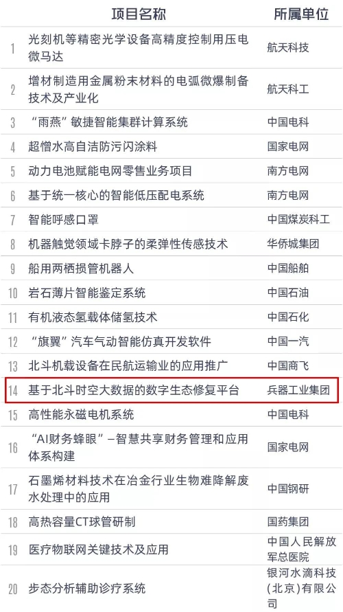 為落實黨中央、國務院關于加快實施創(chuàng)新驅動發(fā)展戰(zhàn)略、深入推進大眾創(chuàng)業(yè)萬眾創(chuàng)新的決策部署,加快推動中央企業(yè)創(chuàng)新創(chuàng)業(yè)高質量發(fā)展,國資委于2020年9月組織開展了第三屆中央企業(yè)熠星創(chuàng)新創(chuàng)意大賽。 大賽啟動以來,各中央企業(yè)積極組織參加,社會創(chuàng)新團體踴躍參與,共3340個項目、2.3萬余人報名參賽。通過項目初選和復選,共有516個項目面向社會進行了投資路演和對接,吸引眾多投資機構和知名企業(yè)參與,達成一批合作意向。 經(jīng)總決賽評選,共評選出一等獎20項、二等獎30項、三等獎50項、優(yōu)秀獎100項,中國兵器工業(yè)集團有限公司4個項目獲獎并榮獲“優(yōu)秀組織單位”。 兵器工業(yè)集團獲獎項目 一等獎(1個) 基于北斗時空大數(shù)據(jù)的數(shù)字生態(tài)修復平臺(創(chuàng)意類) 三等獎(1個) 三合一北斗智能邊海防管控終端(創(chuàng)新類) 優(yōu)秀獎(2個) 基于北斗的鐵路工程測量創(chuàng)新應用(創(chuàng)意類) 公共交通一體化智慧監(jiān)測系統(tǒng)(創(chuàng)新類) 完整獲獎名單 |