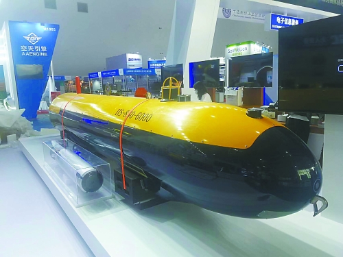 相比公眾相對熟悉的無人機(jī)和無人車,無人船和無人潛航器的知名度略低,但本屆珠海航展上展出的相關(guān)裝備具備相當(dāng)高的水平。例如HS-880-6000型自主式水下航行器(AUV)就是國內(nèi)首型搜救型無人潛航器。它的最大工作深度達(dá)6000米,能以3節(jié)的速度連續(xù)航行24小時(shí),配備有深水遇險(xiǎn)目標(biāo)高分辨低照度照明系統(tǒng)、聲信標(biāo)定向引導(dǎo)聲吶、水聲探測側(cè)掃聲吶等,具備工作水深范圍寬、載荷能力大、續(xù)航力長、搜尋探測能力強(qiáng)等特點(diǎn),可對深海目標(biāo)全自主精細(xì)搜尋、探測、定位,執(zhí)行深海水下目標(biāo)搜尋探測和海洋科學(xué)研究任務(wù)。另一款“守望者”無人潛航器個(gè)頭小巧,配備有光學(xué)探頭、戰(zhàn)斗部和通信設(shè)備,可以自動(dòng)靠近水中或海底目標(biāo)進(jìn)行觀測、毀傷目標(biāo),用于執(zhí)行反水雷、排障、海底管道巡檢等任務(wù)。