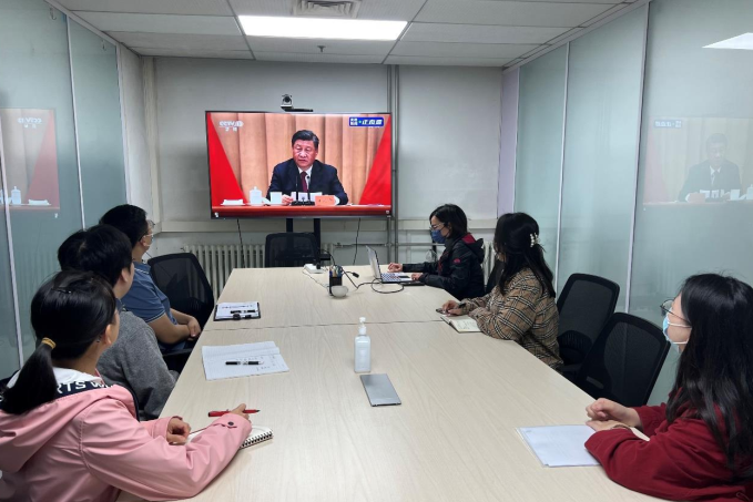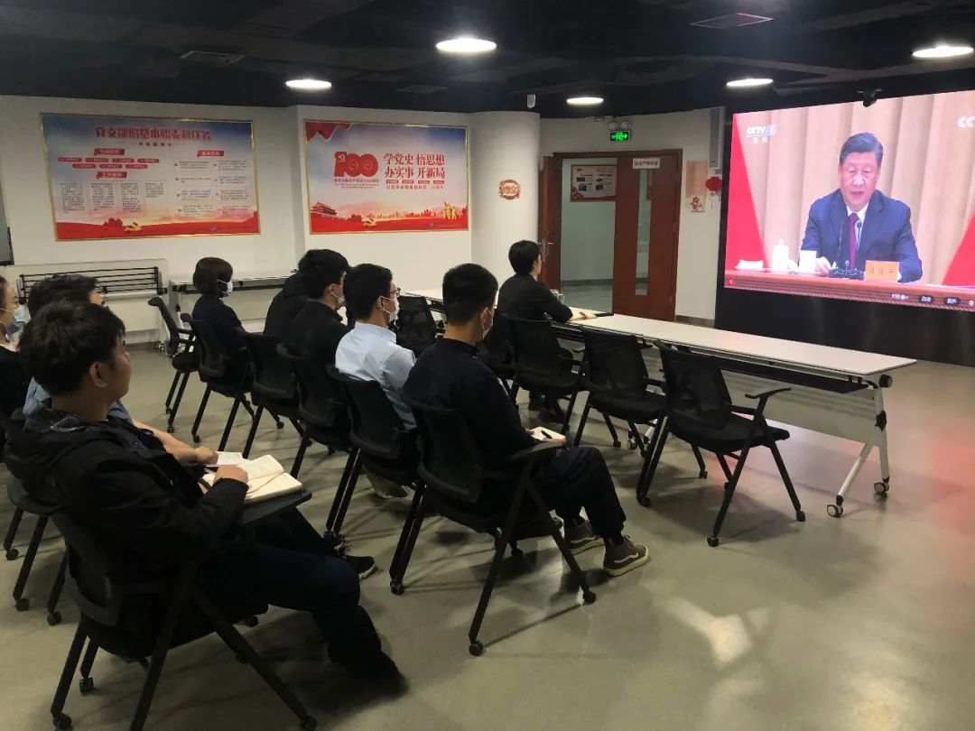 ▲北化研究院集團(tuán)團(tuán)委組織團(tuán)員青年收看現(xiàn)場直播