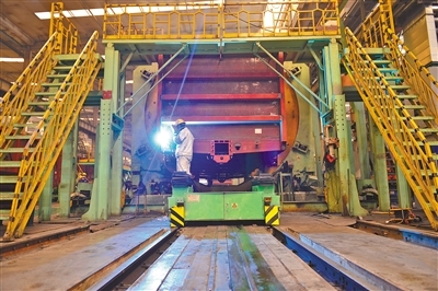 中國(guó)兵器工業(yè)集團(tuán)一機(jī)集團(tuán)北方創(chuàng)業(yè)公司生產(chǎn)線開足馬力生產(chǎn)鐵路車輛產(chǎn)品。日前,為圓滿完成1200臺(tái)C70E(H)型通用敞車生產(chǎn)任務(wù),該公司不斷創(chuàng)新生產(chǎn)組織模式,新、舊兩條生產(chǎn)線全面啟動(dòng),白、夜班雙班組織生產(chǎn),有效保障生產(chǎn)進(jìn)度。(王磊 攝) |