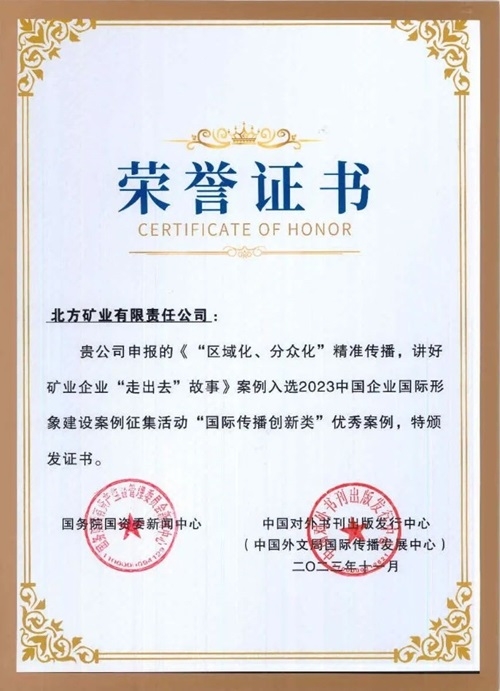 論壇上,“2023中國企業(yè)國際形象建設案例征集活動”評選結(jié)果揭曉。評選活動以“挖掘典型案例、建設企業(yè)形象、講好中國故事”為宗旨,從來自中央企業(yè)、地方國企及民營企業(yè)報送的251個有效案例中遴選出“共建新絲路”“跨文化融合”“國際傳播創(chuàng)新”“筑夢人物故事”四類專項優(yōu)秀案例共40個。中國兵器工業(yè)集團北方公司北方礦業(yè)有限責任公司案例《“區(qū)域化、分眾化”精準傳播,講好礦業(yè)企業(yè)“走出去”故事》入選“國際傳播創(chuàng)新類”優(yōu)秀案例。 作為高質(zhì)量共建“一帶一路”的重要力量,北方礦業(yè)堅持以“區(qū)域化、分眾化”精準傳播方式塑造企業(yè)形象,根據(jù)項目所在國社交媒體使用情況,建立臉書、推特、領(lǐng)英傳播矩陣,使用英、法、阿多語發(fā)布,堅持屬地人講屬地事,以高品質(zhì)視頻、海報、圖文等多媒體形式講述中國企業(yè)為當?shù)乜沙掷m(xù)發(fā)展做出的貢獻,并取得積極傳播成效。