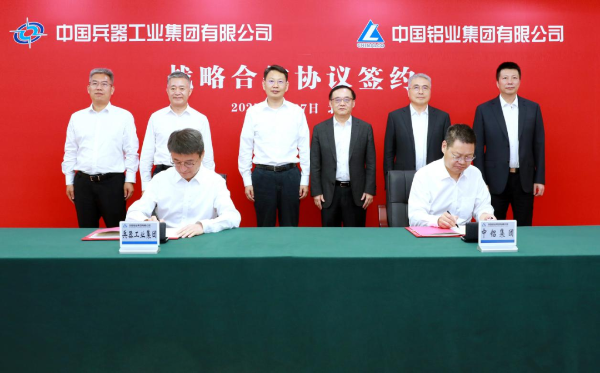 6月27日,中國(guó)兵器工業(yè)集團(tuán)有限公司與中國(guó)鋁業(yè)集團(tuán)有限公司在京簽署戰(zhàn)略合作協(xié)議。集團(tuán)公司黨組書記、董事長(zhǎng)程福波,總經(jīng)理、黨組副書記馬云雙與中鋁集團(tuán)黨組書記、董事長(zhǎng)段向東,總經(jīng)理、黨組副書記王石磊進(jìn)行了座談交流并共同見證簽約。集團(tuán)公司黨組成員、副總經(jīng)理閆哲、史志榮;中鋁集團(tuán)黨組成員、副總經(jīng)理田永忠、魏成文出席活動(dòng)。閆哲、田永忠分別代表雙方簽署協(xié)議。