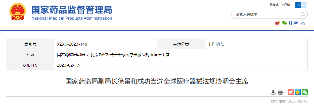 利雅得時(shí)間2月16日下午4時(shí),國(guó)家藥監(jiān)局副局長(zhǎng)徐景和成功當(dāng)選第27屆全球醫(yī)療器械法規(guī)協(xié)調(diào)會(huì)(GHWP)主席。這在我國(guó)醫(yī)療器械監(jiān)管國(guó)際化進(jìn)程中具有重要意義。