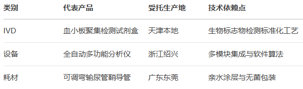 IVD類100%本地生產(chǎn):血小板聚集檢測(cè)試劑盒由天津中成佳益代工,反映本地生物醫(yī)藥代工能力提升。