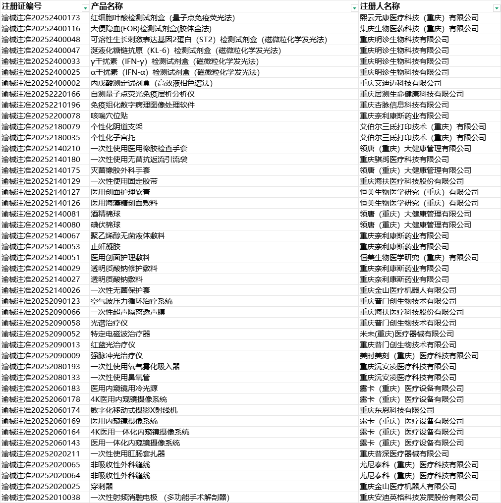 2025年上半年注冊人制度下,重慶二類醫療器械產業市內委托占比近70%,跨省委托占比超30%,產業鏈處于升級階段。