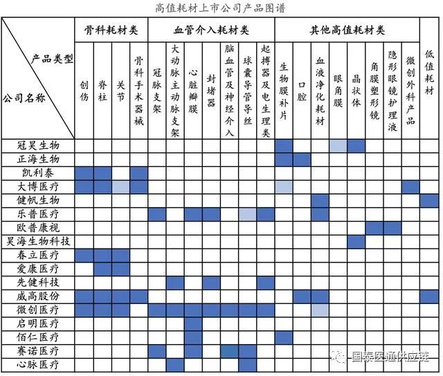 高值耗材上市公司產(chǎn)品圖譜