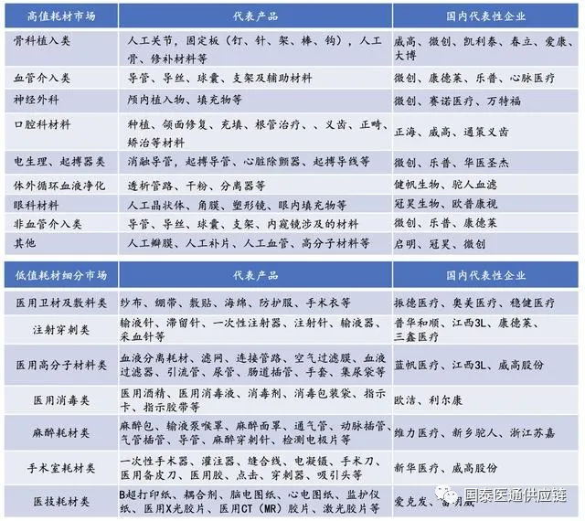 國內(nèi)低值耗材上市公司產(chǎn)品圖譜