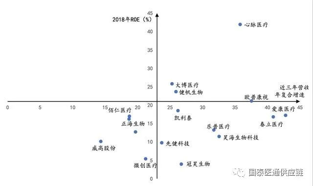 中國高值耗材上市公司ROE與營收增長率矩陣
