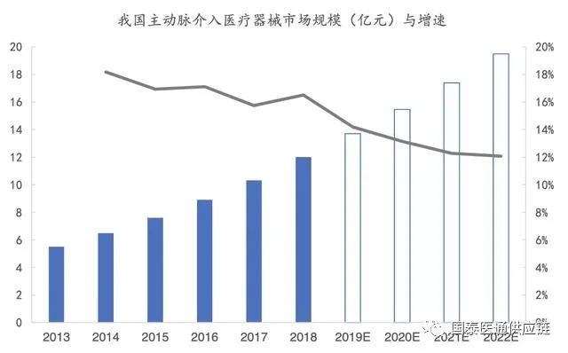 主動(dòng)脈血管介入器械:市場規(guī)模由2013 年的5.5億元增長至2017的10.3億元,年復(fù)合增長率高達(dá)17.2%。隨著我國主動(dòng)脈疾病篩查技術(shù)不斷發(fā)展、臨床相關(guān)經(jīng)驗(yàn)不斷提升,我國主動(dòng)脈介入醫(yī)療器械預(yù)計(jì)市場規(guī)模于2022年增長至19.5億元。