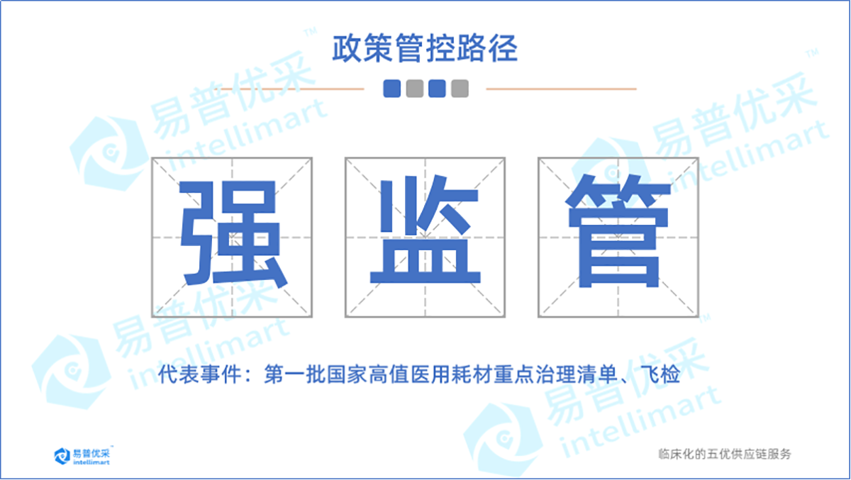 第三條是加強(qiáng)監(jiān)管,比如年初衛(wèi)健委即下發(fā)了第一批國家高值醫(yī)用耗材重點(diǎn)治理清單,以及醫(yī)保局日趨嚴(yán)苛、密集的飛行檢查,均在借助行政手段的力量逐步規(guī)范耗材采購及用耗行為。我們逐一來看。